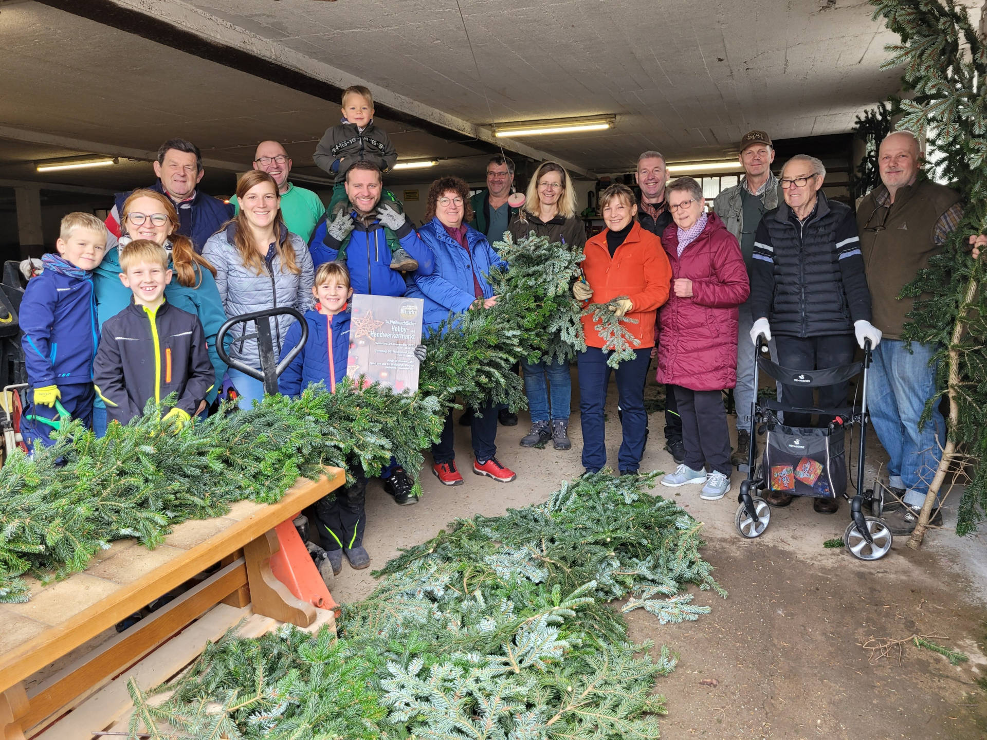 Die Vorbereitungen zum 14. Weihnachtlichen Hobby- und Handwerkermarkt laufen. Auf dem Bourshof hat die "Nachbarschaft Eppinghoven" den mehr als 10 m langen Kranz für den Torbogen am Kirchplatz gebunden. Wir bedanken uns bei allen Beteiligten für die tatkräftige Unterstützung.